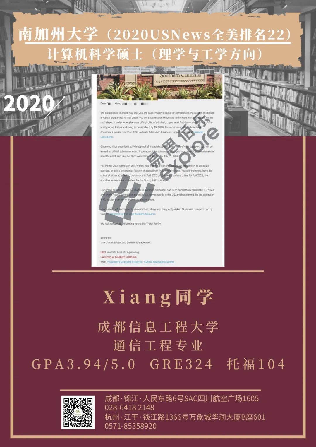 While Xiang's computer skills and academic research capabilities have been continuously improving, his TOEFL score has finally reached 104, his GRE score has reached 324+4.0, and his average academic score at school is 89.