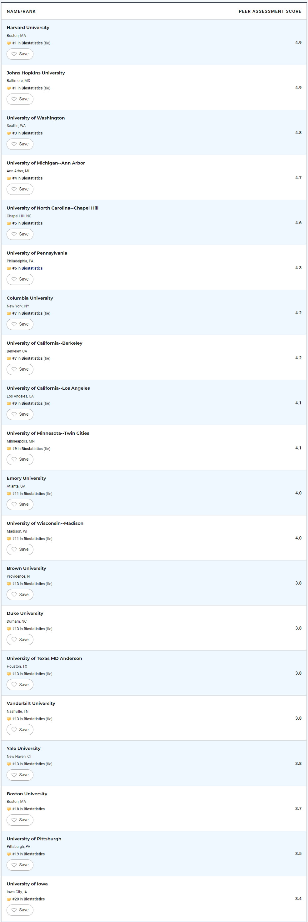 Finally, I also chose a school recommended by a professor: the University of Iowa (ranked 20th).