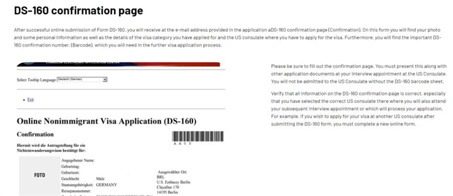 在去大使馆或总领事馆进行面谈之前,须通过在线方式完成并提交DS-160表。表格中除按要求以英文(拼音)和中国文字填写全名外(中国文字在表格中标明为“本国文字”),所有问题均以英文作答。