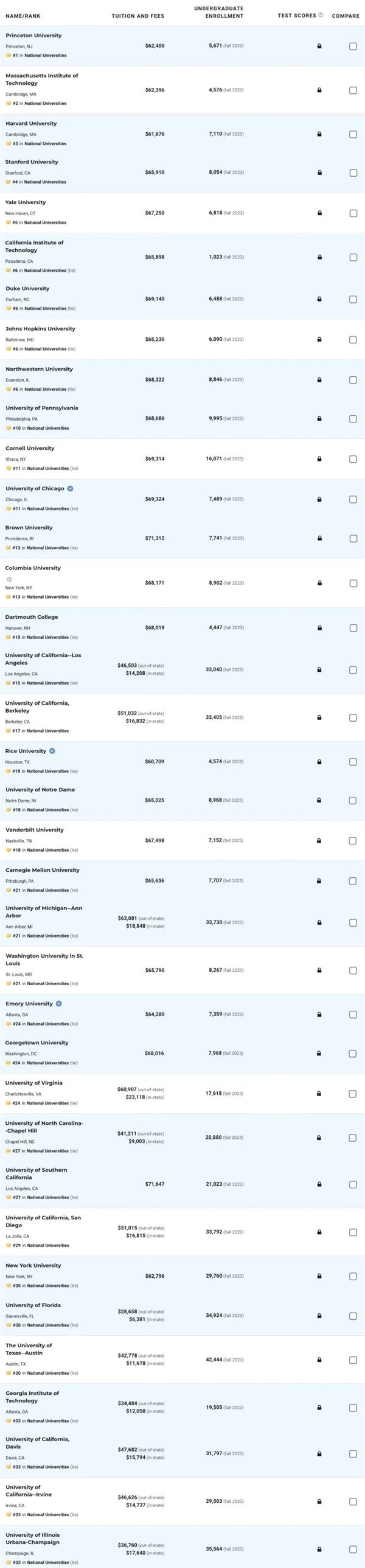 In this leaked list in advance, The TOP 10 university rankings are as follows: Princeton University (#1), Massachusetts Institute of Technology (#2), Harvard University (#3), Stanford University (#4), Yale University (#5), Johns Hopkins University (#6), Northwestern University (#6), California Institute of Technology (#6), Duke University (#6), and University of Pennsylvania (#10).