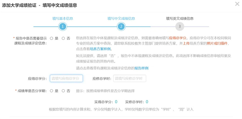 Fill in the grade information as prompted, upload the transcript form, and make sure it is consistent with the training program and the transcript.