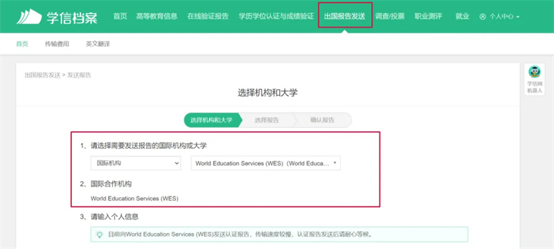 After the Chinese and English certifications are completed, send the certification report from the China Higher Education Student Information Network to WES.