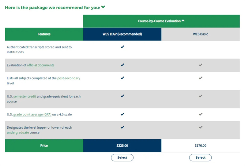 1️ ️ WES Basic: Standard certification service, which includes assessment of the equivalence of international qualifications and provides a detailed certification report, but this service only has certified grade reports, does not include grade archives, and grades can be sent to other schools within half a year.
