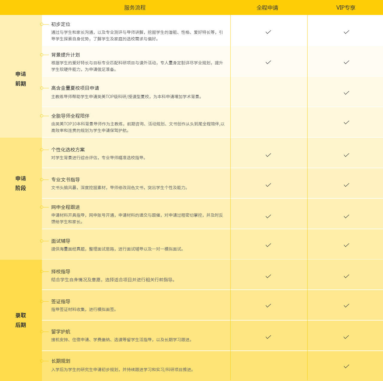 04The entire process of studying abroad application, including software and hardware background enhancement, school selection and selection, document creation, application follow-up, interview coaching, visa processing, etc., provides strong support for overseas applications.